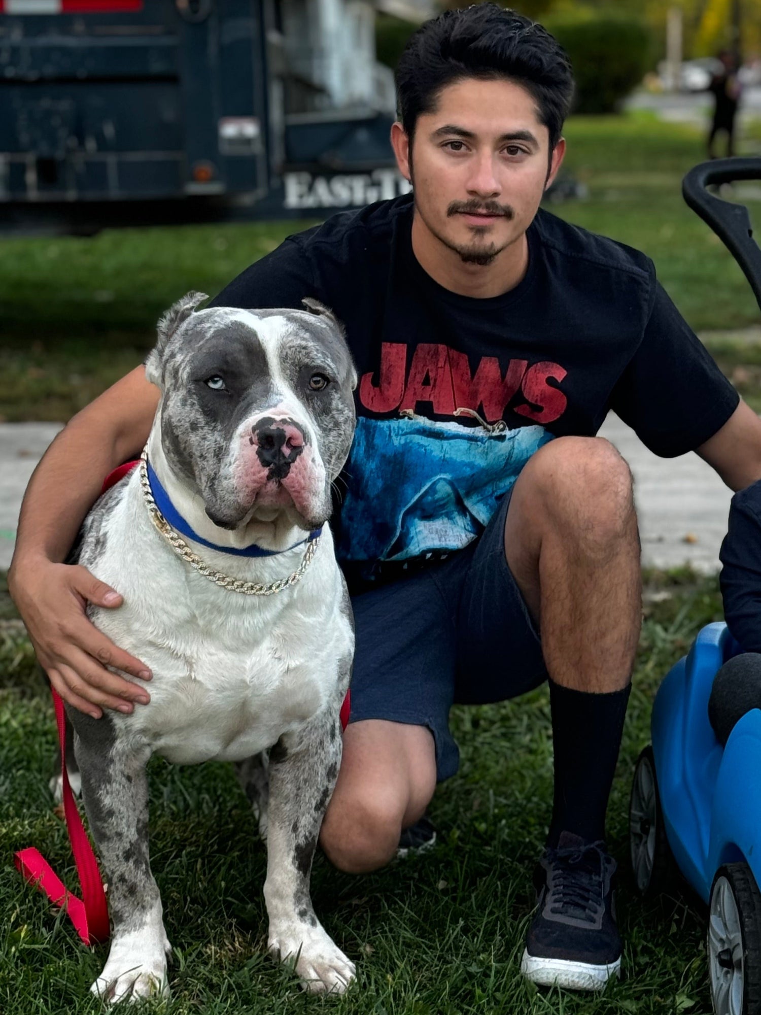 Named after one of the most used materials on planet Earth, it’s versatile, strong, & lasts a lifetime. CONCRETE IS OUR CONCRETE STUD, and he’s a Gentle giant, full of endless love and affection; this pup is intelligent and joyful. Running through his veins, is pure elegance stacked with the best in the XL American bully bloodlines, including Bossy’s, Andrades, Topdog, and Luxurious. This XL American bully has everything you could ask for, impressive size, bone, structure, temperament, and a unique blue Merle coat!